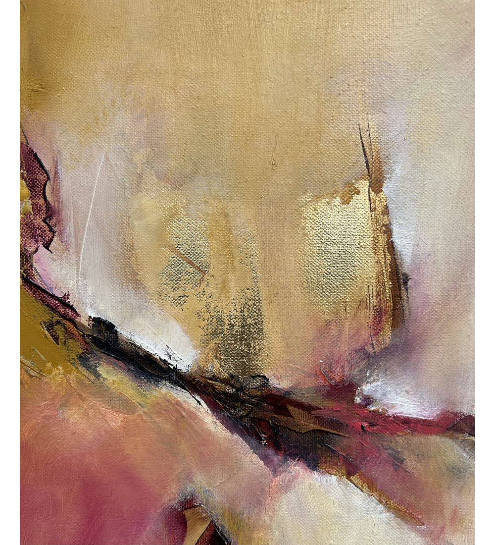 Obra pintada con óleo y lámina imitación oro ( cobre y zinc) sobre tela.